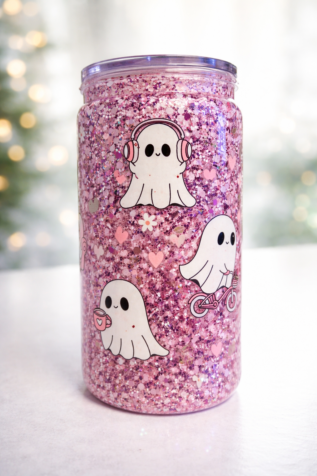Το Hocus Pocus – I Need Coffee To Focus tumbler συνδυάζει λαμπερό ροζ glitter, παιχνιδιάρικο design με φαντασματάκια και μια ατάκα που μιλάει σε όλους μας πριν τον πρώτο καφέ της ημέρας.